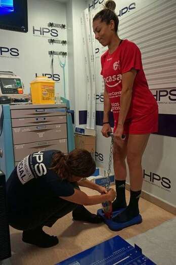 La internacional brasileña se sometió durante la mañana de este lunes a las pertinentes pruebas médicas en el Hospital Perpetuo Socorro bajo ls directrices de la doctora Clara Quintana. Y por la tarde conocerá a partir de las 19.00 horas a sus nuevas compañeras y ya se pondrá a entrenar bajo las órdenes de Carlos Herrera y demás cuerpo técnico del conjunto de Las Remudas.