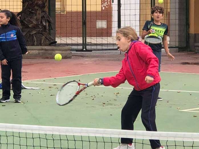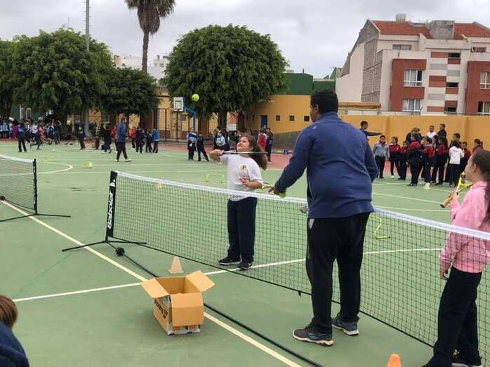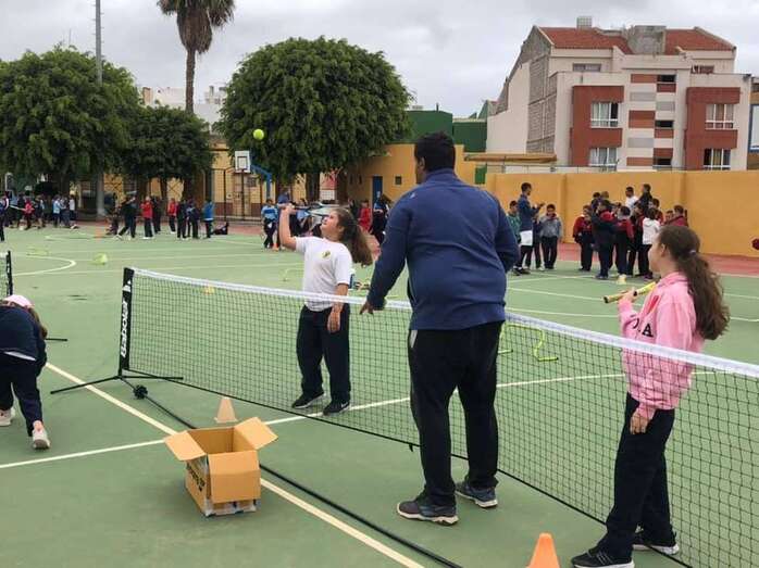 Telde.- Alumnos de los CEIPs teldenses Saulo Toron, Maestro Felix Santana y Padre Collado participaron este viernes en la segunda jornada del Street Tennis, una iniciativa del programa Engánchate al Deporte de la Concejalía de Actividad Física y Deportes que coordina Diego Ojeda Ramos con la colaboración del Club Tennis Academy El Cortijo para dar a conocer este deporte entre los escolares.