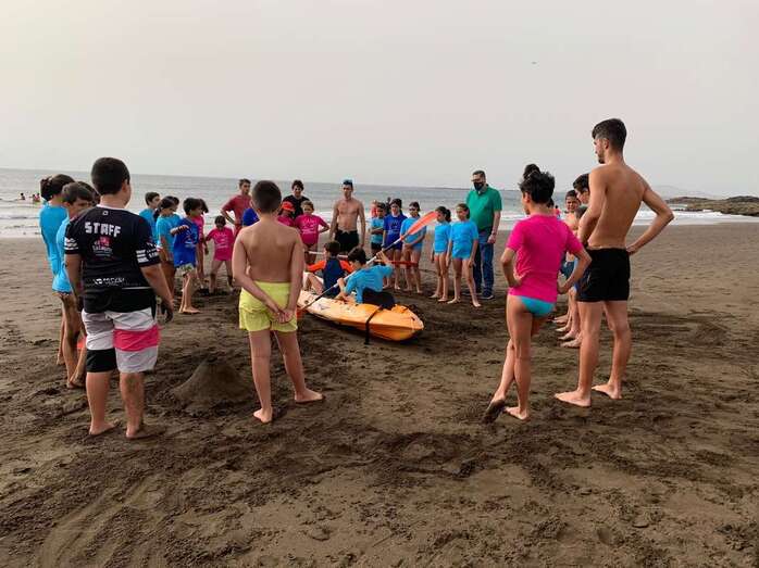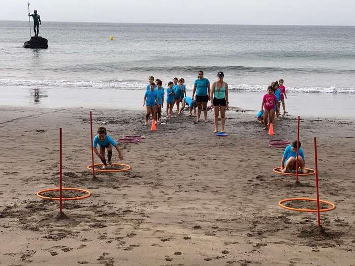 Los participantes del campus, que se desarrolla en el campo de fútbol Manuel Martín Naño y la playa bajo la organización del Club Ciclista Picachos, recibían este martes la visita del concejal de Actividad Física y Deportes del Ayuntamiento de Telde.