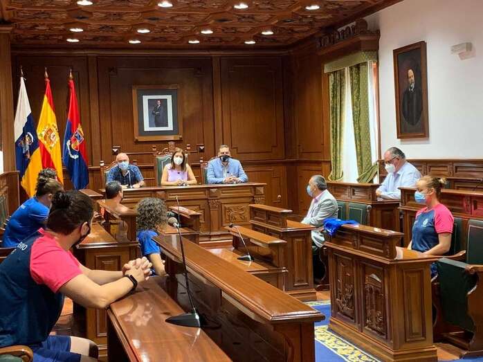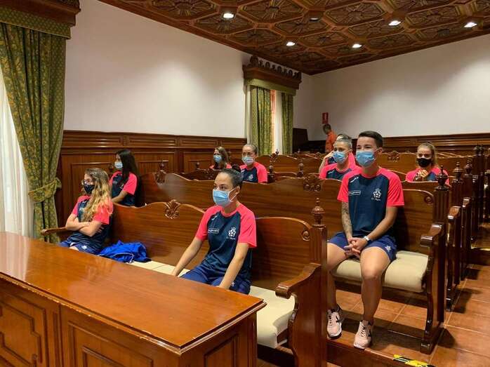 Telde.- El Ayuntamiento de Telde brindó este lunes un recibimiento a las jugadoras y al equipo técnico del Preconte Telde, equipo de fútbol sala femenino que este sábado consiguió el ascenso a la Primera División.