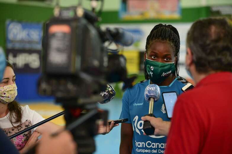 Telde.- El Pabellón Insular Antonio Moreno acogió esta tarde el tradicional Media Day del Rocasa Gran Canaria, en los prolegómenos del primer entrenamiento del nuevo curso, no sin antes someterse cada jugadora, miembros del cuerpo técnico y periodistas a un control de temperatura, higiene de manos y registro de entrada, además de portar las obligatorias mascarillas para cumplir con la "nueva normalidad" que ha instaurado en la sociedad mundial la crisis sanitaria del Covid-19.