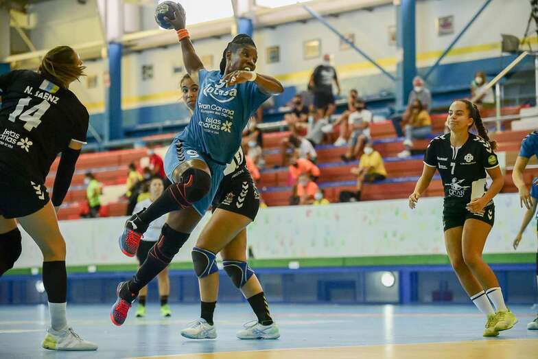 Iara Grosso, María Gomes y Haridian Rodríguez perforaban la portería del equipo que vestía uniforme negro en la tarde de hoy en apenas dos minutos y la ventaja de 6 goles se antojaba inalcanzable con 25 minutos aún por disputarse (18-12, minuto 35).