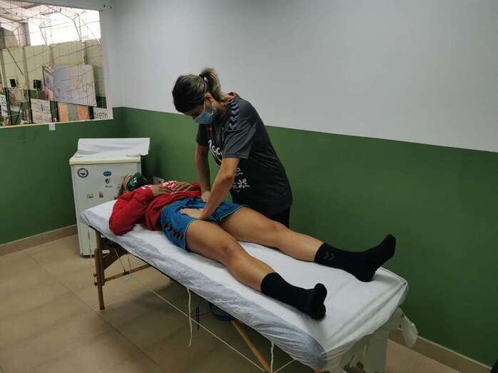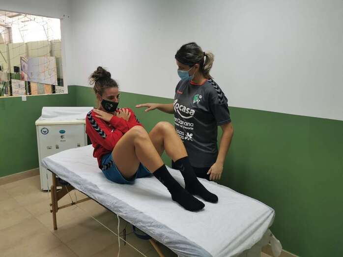 "Tanto la jugadora como yo tenemos que estar en todo momento con la mascarilla puesta mientras la estoy tratando y desinfectamos la camilla cada vez que terminamos el tratamiento antes de dar comienzo al siguiente".