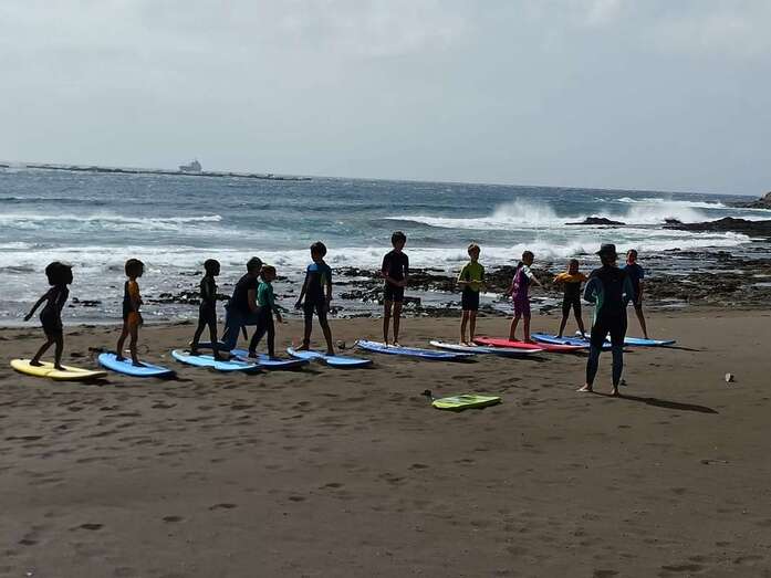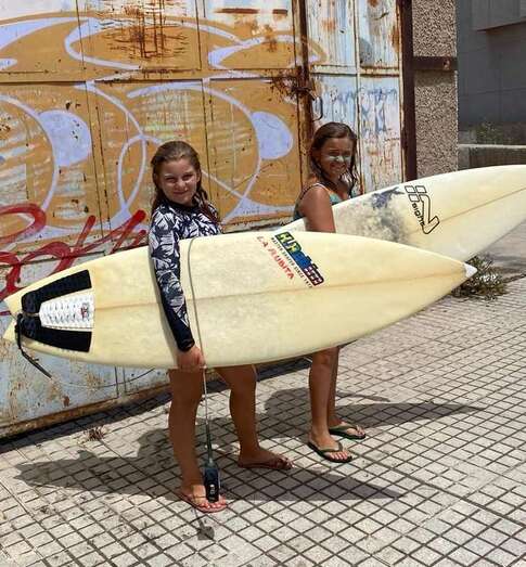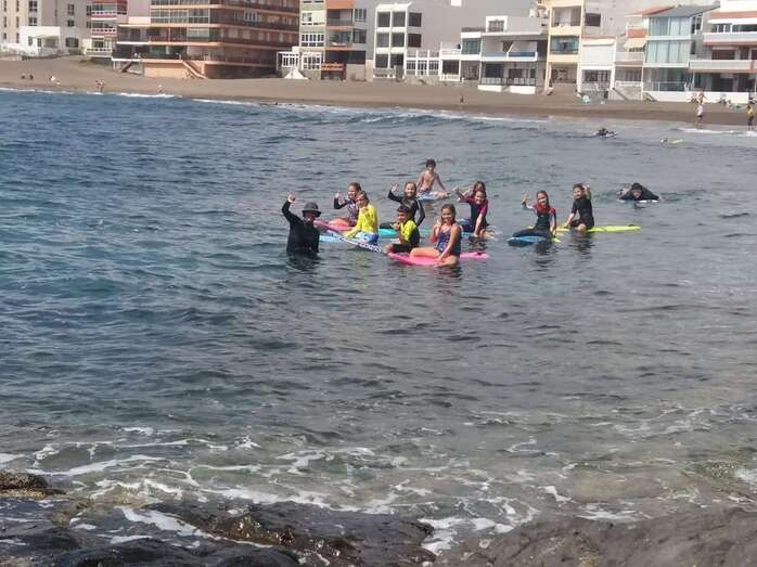 En las últimas semanas y hasta este viernes, jornada en la que finalizó el cursillo, los monitores Angélica Negrín y Mandi Navarro se han empleado a fondo para que los participantes no solo aprendan a surfear sino que también mantengan en su retina y memoria estos momentos de sana diversión en el mar.