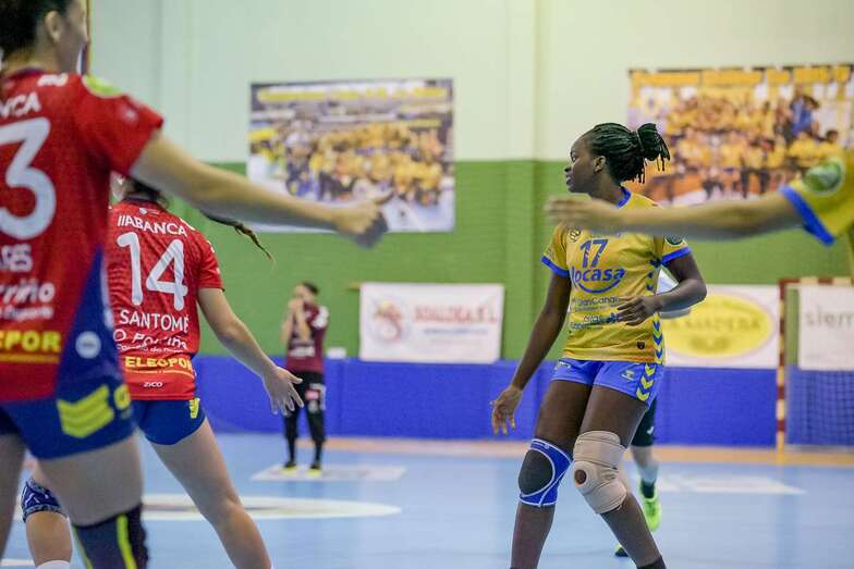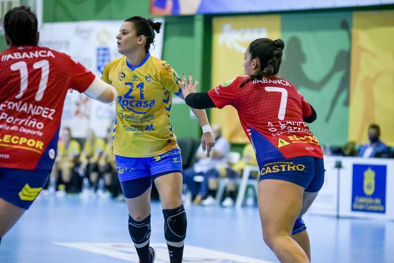Porriño reaccionaba y recuperaba la ventaja con dos lanzamientos cruzados de Aitana Santomé y de Erica Correia ante el que nada podía hacer la cancerbera local, mientras las grancanarias se topaban con los palos de la portería rival.