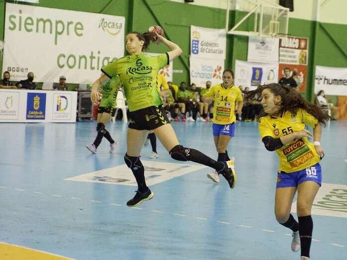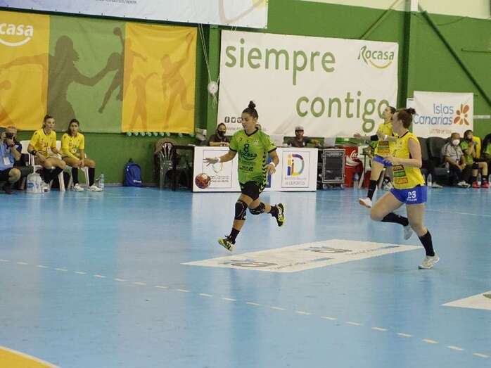 Ana Belén Palomino daba descanso a Andrea en la portería a 10 minutos del ecuador del choque y el Rocasa, mantenía la mezcla entre veteranas y noveles que seguía dando el mejor de los resultados, obligando a Teixeira a volver a congelar el tiempo en el 22:21 para buscar la reacción de sus jugadoras con un abultado 4-11 en el electrónico del Pabellón Insular Antonio Moreno.