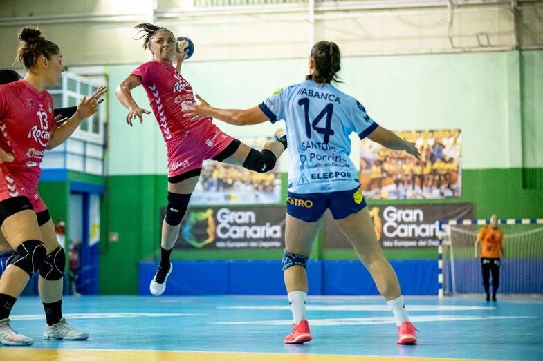 Rocasa Gran Canaria lo intentaba pero la buena defensa del Porriño y las intervenciones de Fátima bajo palos se le atragantaban a las pupilas de Robert Cuesta que solicitaba un tiempo muerto a los 12 minutos, tras lograr aumentar tan sólo en un gol su renta a través de un lanzamiento desde los 7 metros de Sayna (2-5).