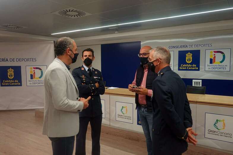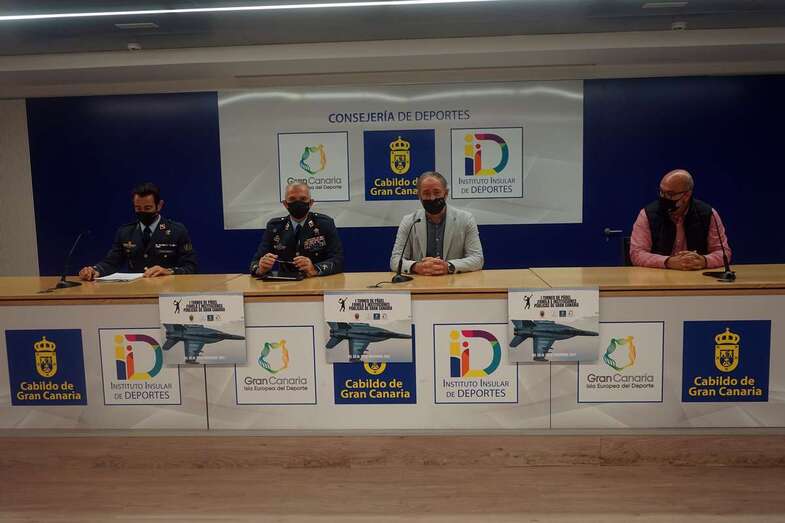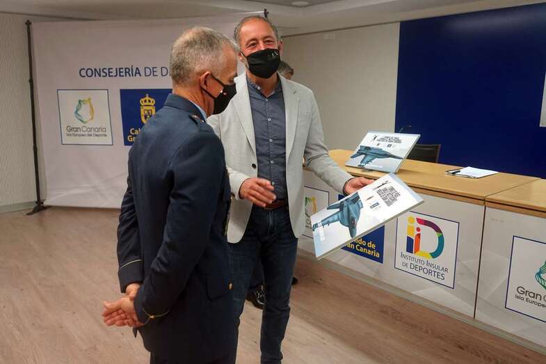 El consejero de Deportes del Cabildo de Gran Canaria, Francisco Castellano, y el general jefe del Estado Mayor del Ejército del Aire, Fernando Torres San José, presentaron la primera edición del Torneo de Pádel Familia e Instituciones Públicas de Gran Canaria, que se celebrará en la Base Aérea de Gando del 24 al 28 de noviembre.