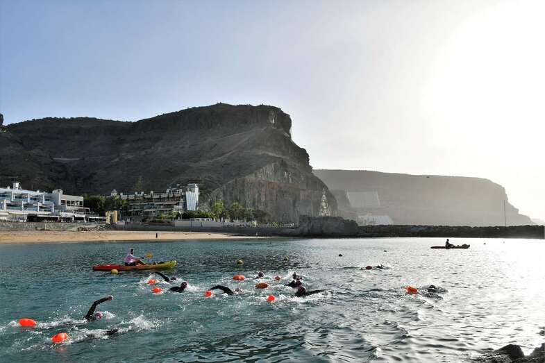 Diciembre y deporte al aire libre es posible en Mogán. Este sábado día 4 ha tenido lugar la cuarta edición de la travesía a nado en aguas abiertas Mogán Open Water.