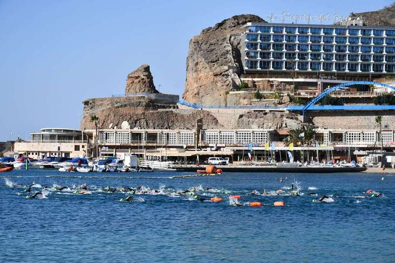 Sol y cielos despejados recibieron esta mañana a los participantes de la prueba de 10.100 metros en la playa de Mogán. Desde el punto más visitado de la isla partieron los nadadores a las 9:15 horas en busca de la victoria en la Playa de Las Marañuelas de la localidad de Arguineguín.