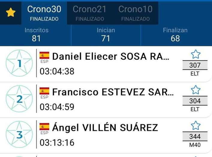 El atleta teldense Ángel Villén Suárez destacó este sábado en la Crono-Trail Almendro en Flor 2022. Quedó tercero en la general de la prueba reina de 30 kilómetros de recorrido y primero de la categoría Máster 40.