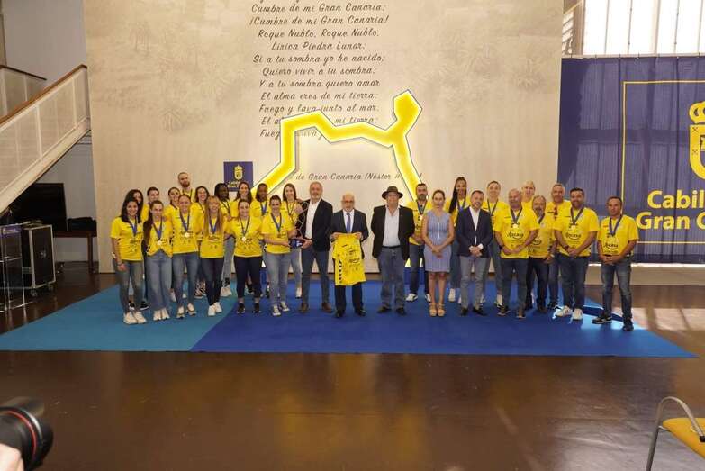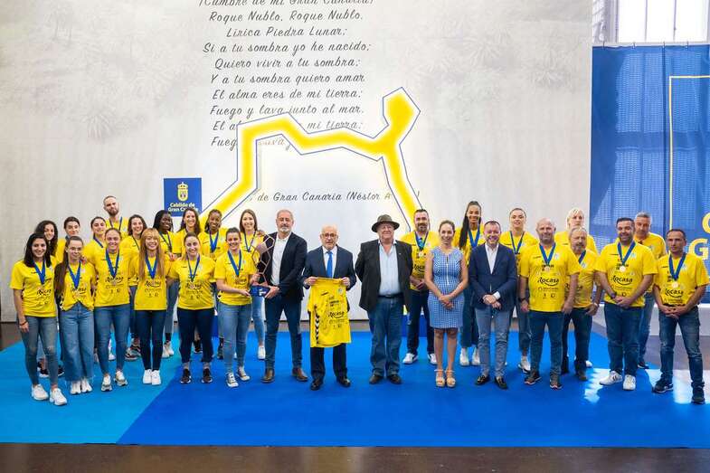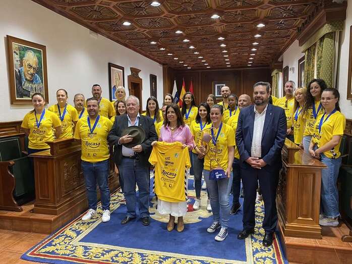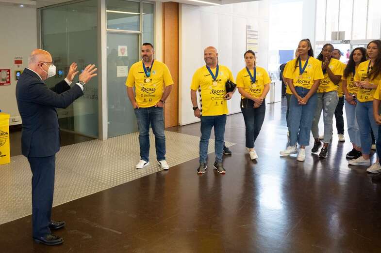 Las jugadoras y equipo técnico del Rocasa Gran Canaria fueron recibidos en las primeras horas de este lunes por la alcaldesa de Telde, Carmen Hernández, y el presidente del Cabildo de Gran Canaria, en sendas recepciones oficiales, tras proclamarse el pasado sábado campeonas de la EHF European Cup.