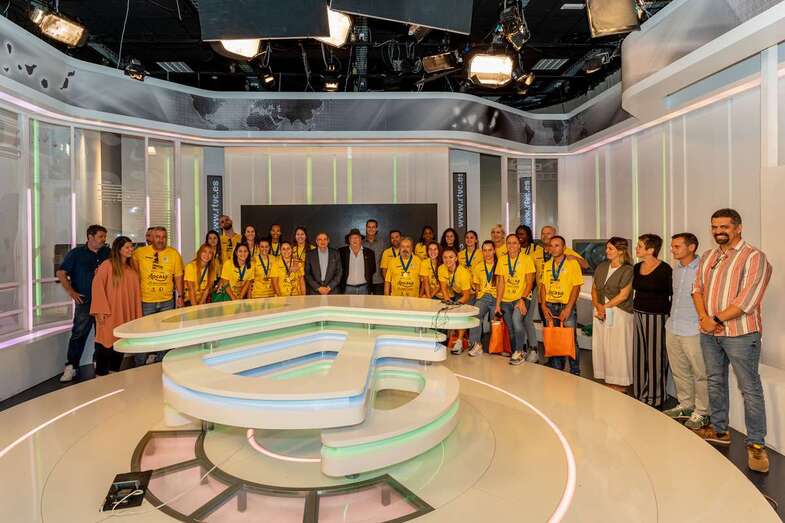 Además, las jugadoras pudieron posar con los periódicos de los que han sido portada y se fotografiaron en el plató donde se contó su hazaña el pasado sábado.