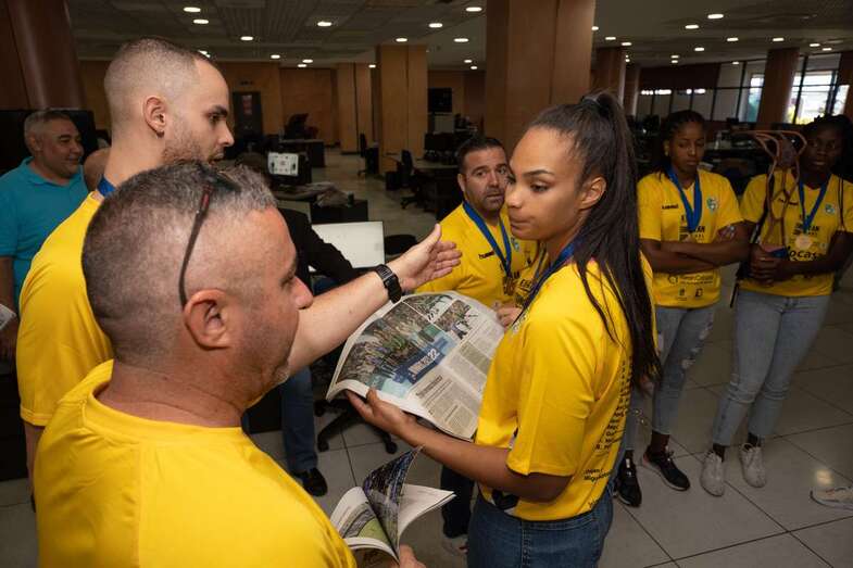Las redacciones de LP, Canarias7 y Televisión Canaria fueron una fiesta para dar la bienvenida al Rocasa Gran Canaria y el título de la EHF European Cup.
