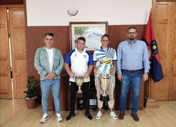 El concejal de Actividad Física y Deportes, Diego Ojeda, recibió días atrás a los representantes del equipo teldense Axinamar de fútbol sala femenino tras proclamarse campeón de la Copa Federación al vencer en la final al representante de Arucas.