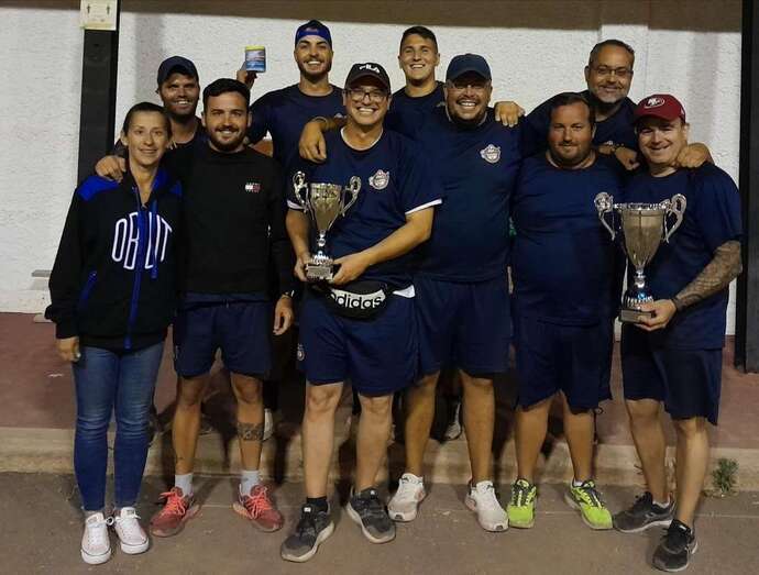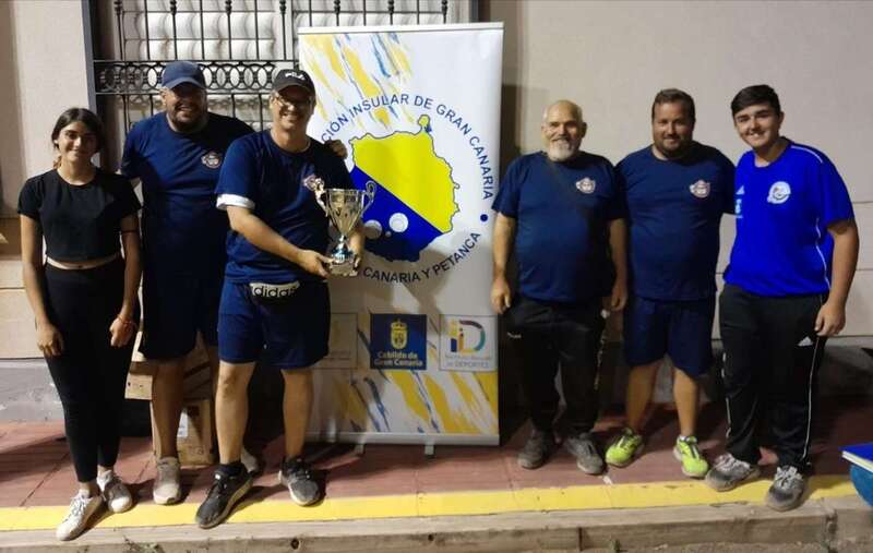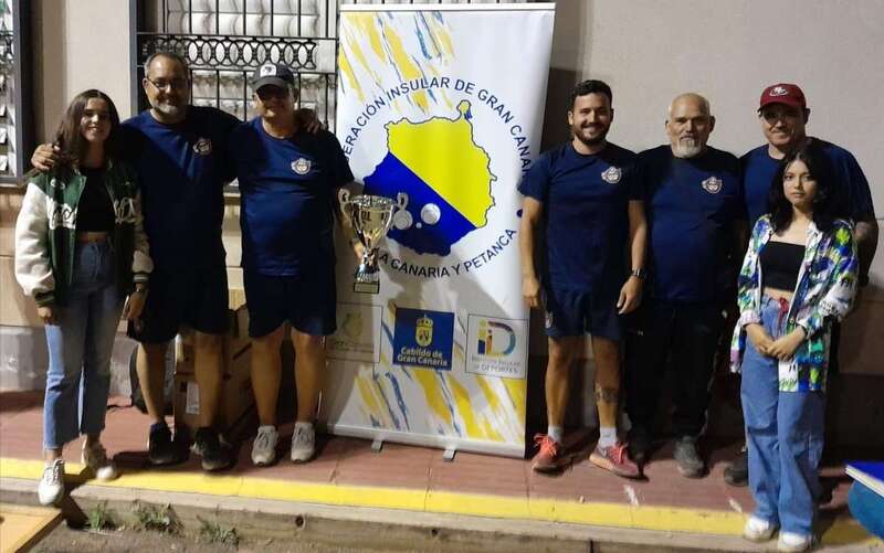 El concejal de Actividad Física y Deportes del Ayuntamiento de Telde, Diego Ojeda, felicita al club teldense de bola y petanca Gerardo Rodríguez tras firmar una temporada brillante en la Liga Insular de Bola Canaria de Gran Canaria 2022, en la que logró un subcampeonato y un tercer puesto en primera categoría masculina, un campeonato en segunda categoría masculina y un subcampeonato en la categoría femenina.