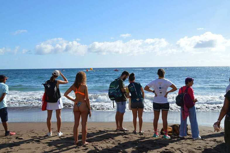 Con una temperatura ambiente de 24 grados, dia soleado y mar rizada, los competidores tuvieron que nadar los 750 metros del primero de los segmentos en la playa de Salinetas con un estado del mar que no estaba en sus mejores condiciones (mar rizada9.