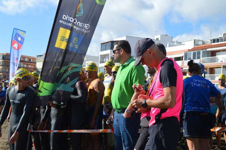 El concejal de Deportes, Diego Ojeda, que siguió la prueba desde sus inicios, participó en la entrega de trofeos a los vencedores de las distintas categorías, un acto que contó con la presencia de la alcaldesa Carmen Hernández y del presidente de la Federación Canaria de Triatlón, Adrián Ornia.