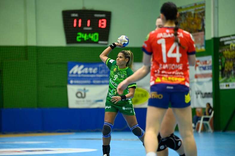 Una Sayna Mbengue inspirada intentaba contener a su equipo en el marcador, con un gran lanzamiento desde fuera del área que ponía el 6-7. Sin embargo, ese tanto sería el preludio de los peores minutos para las teldenses. El Porriño volvía a mostrarse fuerte en ataque, con un alto porcentaje anotador y aumentaba la renta hasta un 6-9.