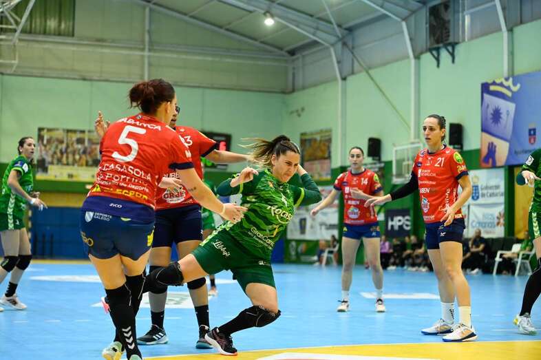 Los minutos pasaban y el Porriño ampliaba su ventaja de nuevo a cuatro goles (20-24). El Rocasa tiró de épica y las de Robert Cuesta volvían a ponerse a dos goles e incluso con opciones de ponerse a uno pero, una vez más, los nervios se apoderaron de las teldenses en un momento clave y la última oportunidad de sumar al menos un empate se esfumaba definitivamente.