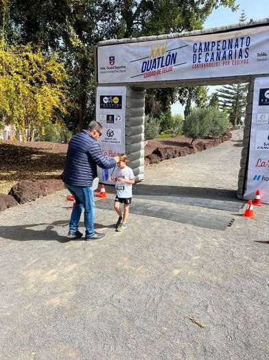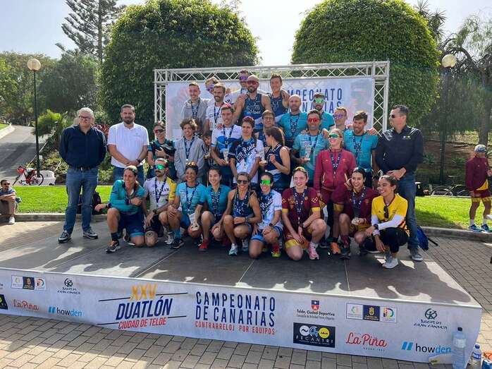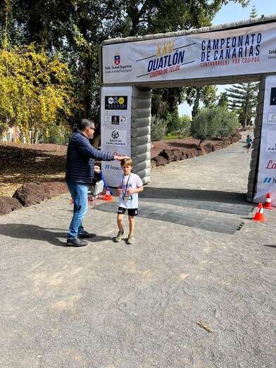 Telde acogió este domingo el Campeonato de Canarias de Duatlón Contrarreloj por equipos e individual de menores. Una prueba que arrancó a las 8.00 horas dentro del 25º Duatlón Ciudad de Telde, promovido por la Concejalía de Deportes del Ayuntamiento de Telde, con la colaboración técnica de la Federación Canaria de Triatlón. Acudieron a la cita los mejores equipos de Canarias de la modalidad.