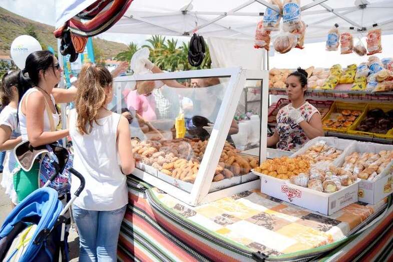 Un escaparate de 125 expositores con la excelencia de la industria agroalimentaria hizo las delicias del público que pudo degustar pan de puño con chorizo de Teror, guarapo, licores vegetales, melones, papayas, fresas de Valsequillo y hasta helado artesano elaborado con leche de cabra.