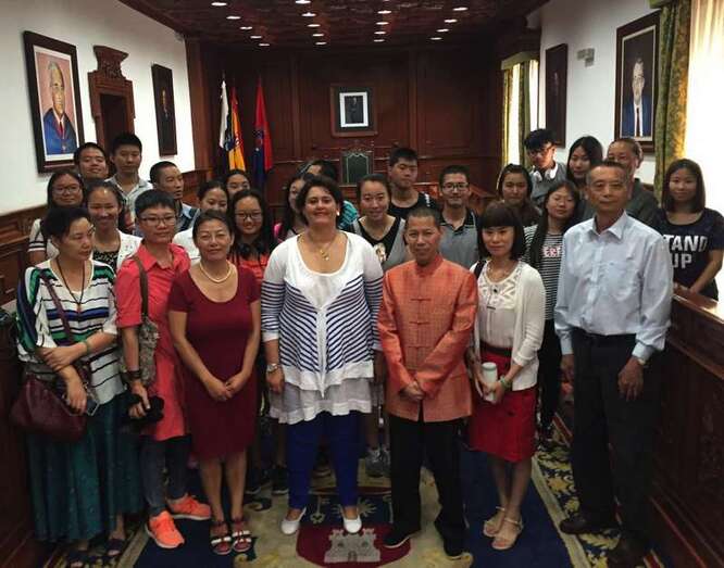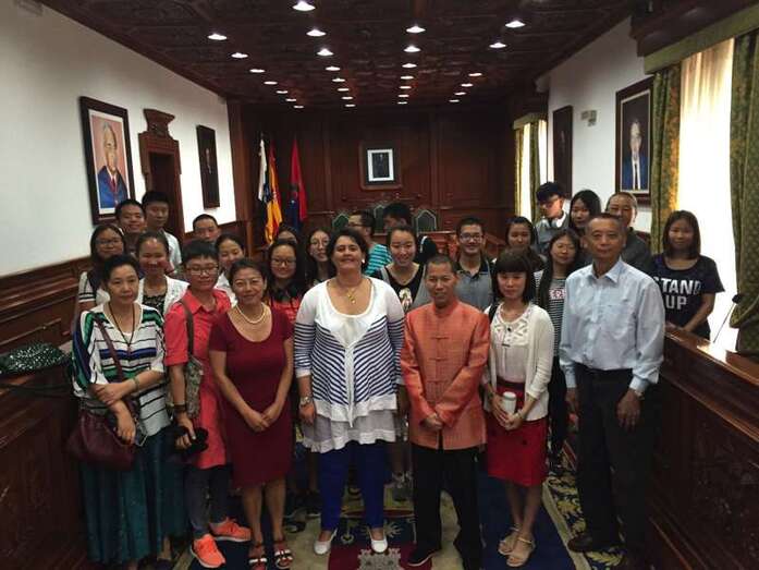 Telde.- La ciudad de Telde recibió este viernes la visita de una comitiva china encabezada por presidente de la asociación Fahua Buhdist y propietario de un canal de televisión vinculado a la empresa Tulouge, Shi Huimin. La concejala de Turismo agasajó a los visitantes y con una recepción oficial en el Salón de Plenos de las Casas Consistoriales de San Juan, aprovechando para forjar lazos de cara a futuras acciones de promoción del municipio en el gigante asiático.