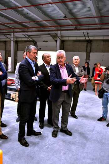 Ángel Medina, presidente de Spar Gran Canaria, recibiá al mandatario regional, quien acudía a la cita acompañado por el viceconsejero de Industria, Energía y Comercio, Adrián Mendoz; y por el concejal teldense y diputado canario Pablo Rodríguez.