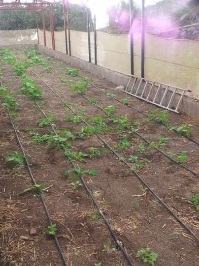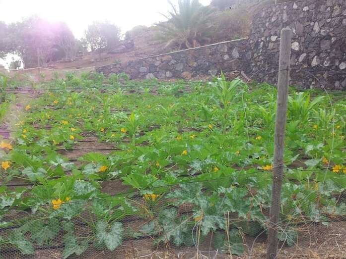 Hernández explica que actualmente hay 17 personas voluntarias que están recibiendo formación teórica y práctica en agricultura ecológica y que bajo la supervisión de técnicos en la materia están cultivando unos 11.000 metros cuadrados con hortalizas (calabazas, calabacines, habichuelas, judías, etc) y flores (siemprevivas), además de explotar las viñas que posee la finca.