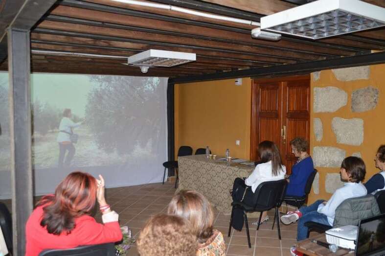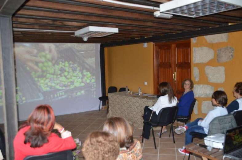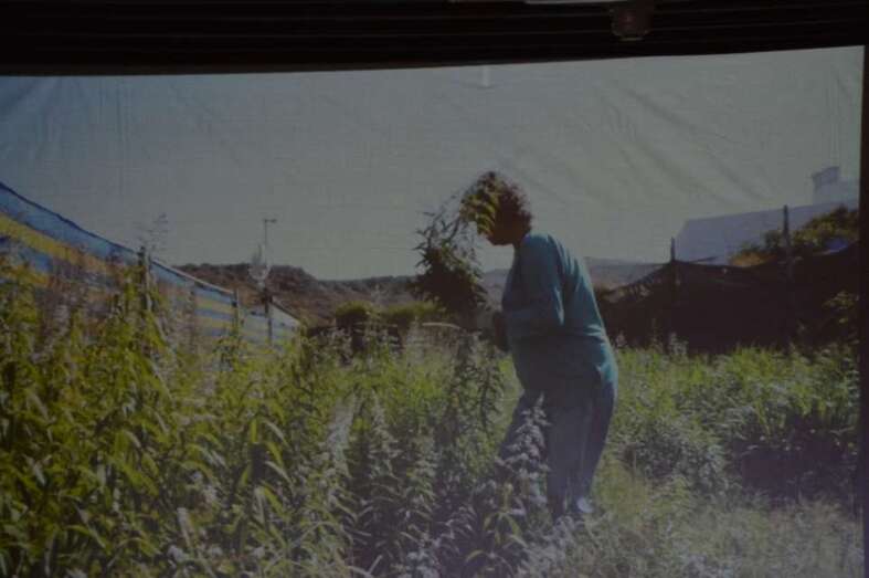 La lectura del manifiesto dio paso a la proyección de tres audiovisuales realizados por la Asociación Cultural Tyldet sobre el trabajo que despliegan a diario en la tierra Ana Jiménez (hierbera), Reyes Medina (agricultora) y Rosi Campos (agricultura ecológica).