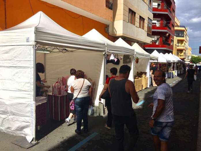 Telde.- El casco de Los Llanos recobró este sábado parte de la actividad de la que gozó antaño gracias a la feria de artesanía organizada por la Asociación de Empresarios de la Zona Comercial Abierta. Bisutería, bolsos, ropa, complementos y también productos gastronómicos son algunos de los artículos que a lo largo de este sábado se podrán encontrar en alguno de los más de 30 puestos que se han instalados en las calles Navarra y Salud Torón.