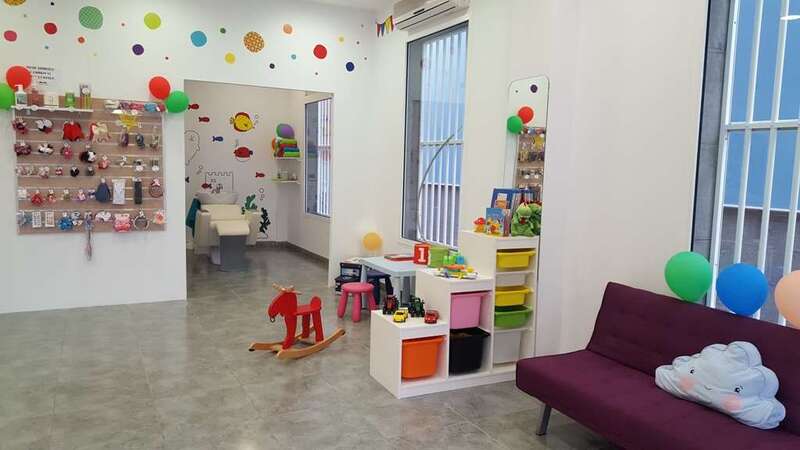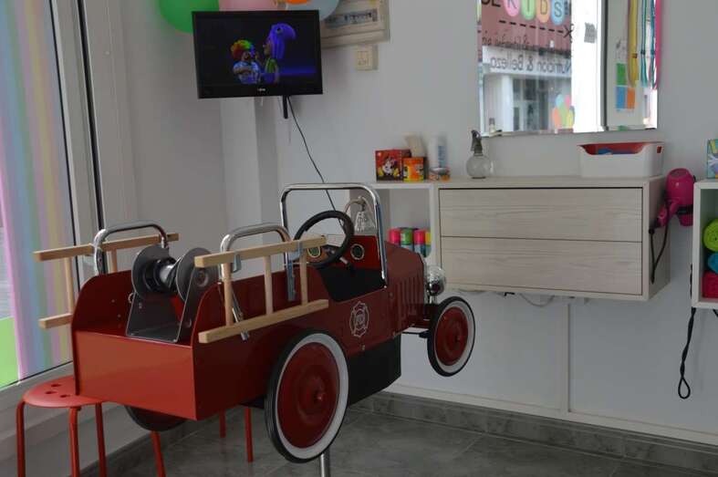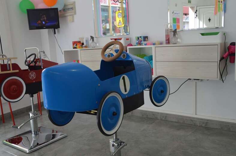 El coqueto establecimiento está en el número 12 de la calle de María Encarnación Navarro. Todo está cuidado al mínimo detalle para que los niños se sientan a gusto y disfruten mientras se les corta el pelo. Los sillones son cochecitos, una pantalla de televisión ofrece dibujos animados y posee una sala de juegos para el entretenimiento de los más pequeños con tabletas/ipads mesas y sillas para pintar.