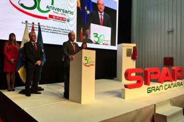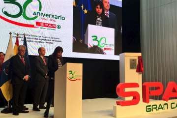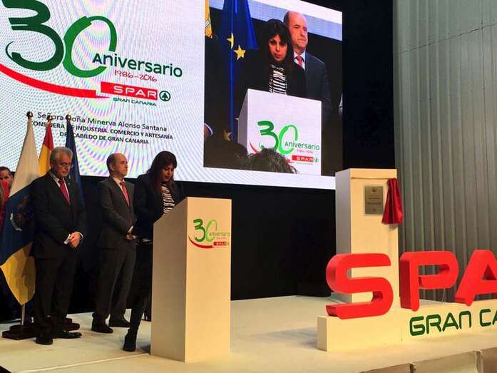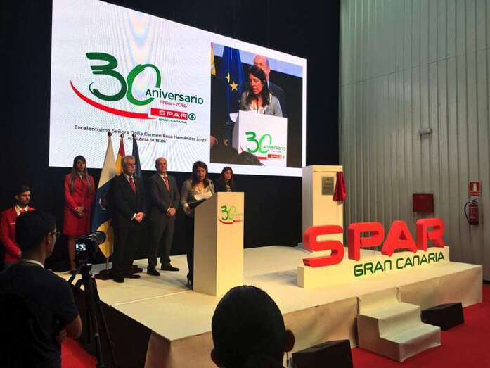 Telde.- El Grupo Spar Gran Canaria conmemoró este jueves en Telde su 30 aniversario con un evento que tuvo como escenario sus instalaciones en El Goro. Un acto en el que la firma grancanaria aprovechó para presentar públicamente su nueva nave logística y en el que estuvieron presentes la alcaldesa Carmen Hernández y la consejera teldense Minerva Alonso.