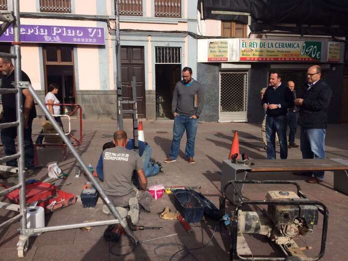Se trata de una experiencia piloto que permitirá a los negocios de la zona difundir sus ofertas, promociones y eventos a través de la APP Gran Canaria Comercio en Conexión. Durante la mañana de este martes, trabajadores insulares han estado realizando las labores de montaje de la infraestructura con la colaboración de Servicios Municipales, área dirigida por Eloy Santana, quién estuvo comprobando las tareas junto al edil accidental de Dinamización, Agustín Arencibia.