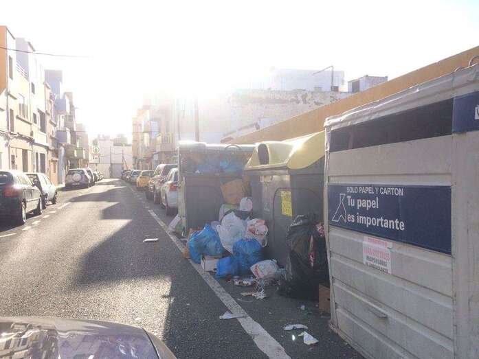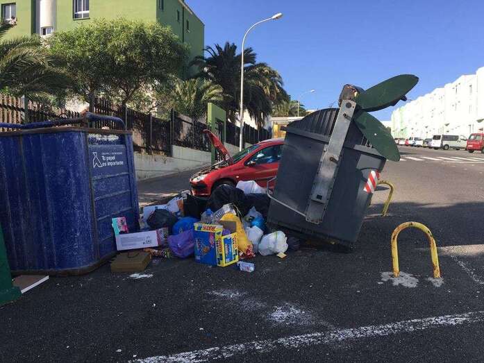 Fuentes del servicio aseguraron a este medio que en algunos puntos los contenedores de carga lateral fueron movidos para que los camiones no pudieron operar y en Jinámar y en otros lugares han aparecido recipientes tirados en el suelo, cargados de residuos. Se desconoce si fueron desplazados por el viento o por la acción de personas para evitar que pudieran ser vaciados.