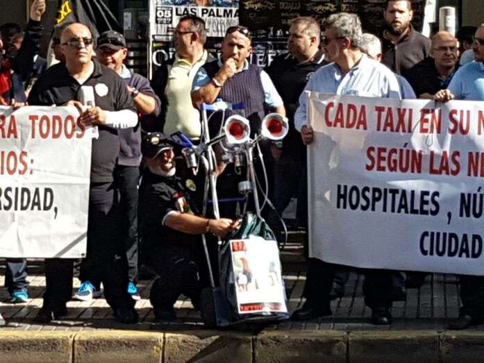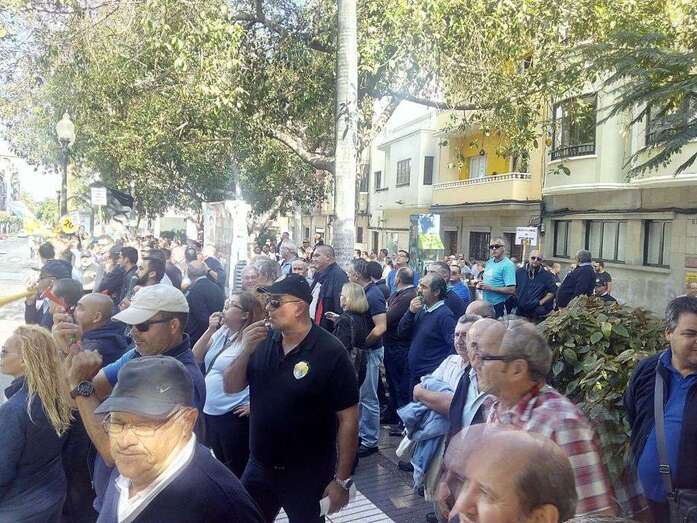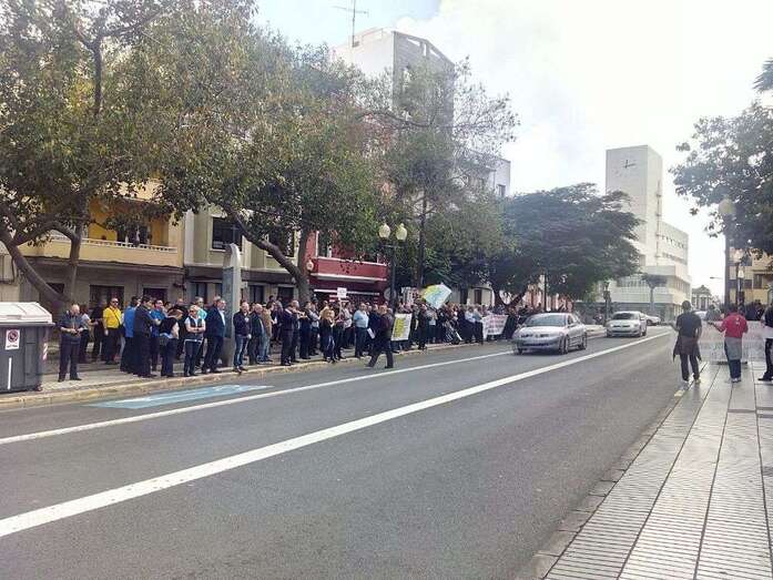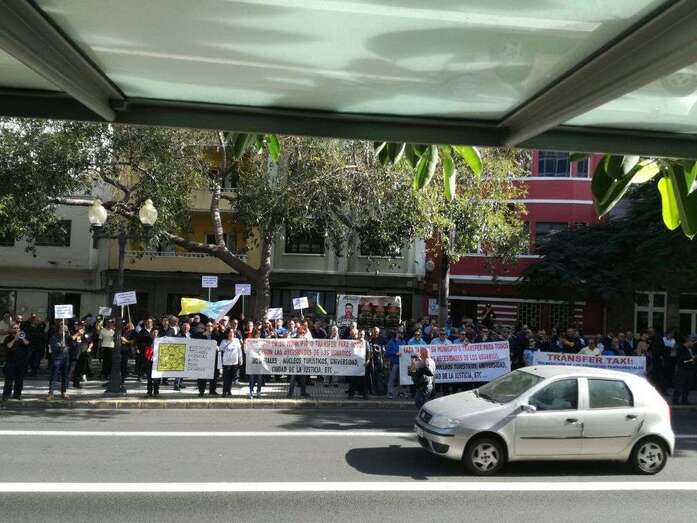 Telde.- Taxistas de Telde estuvieron este lunes al lado de compañeros de toda la Isla en la concentración ante el Cabildo de Gran Canaria para exigir más control e inspección en el sector del transporte de viajero. TA ofrece reportaje gráfico y video de la protesta.
