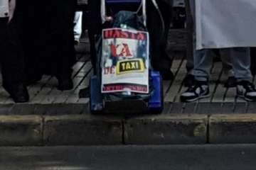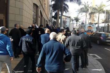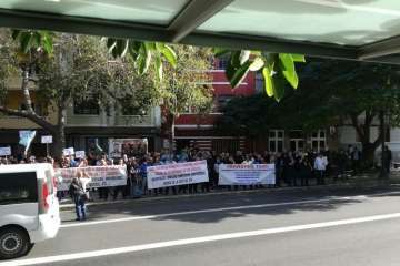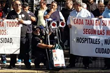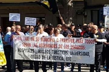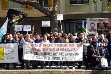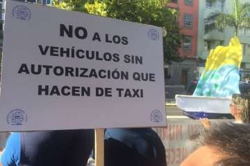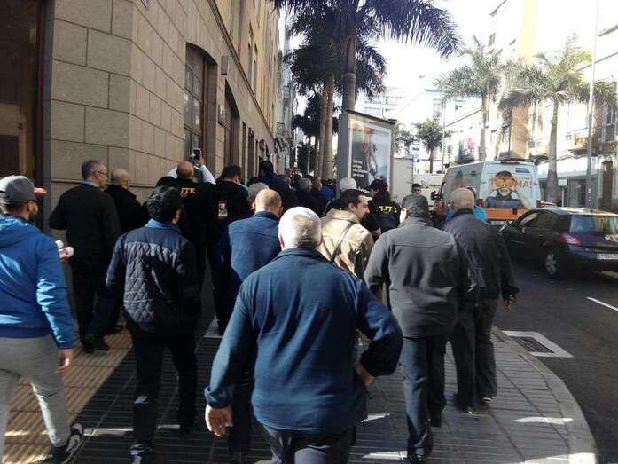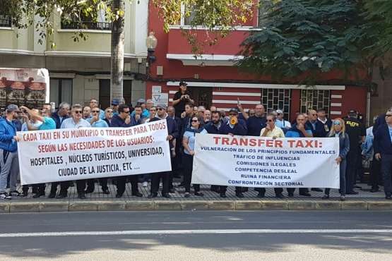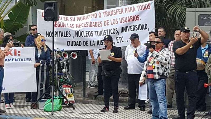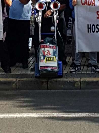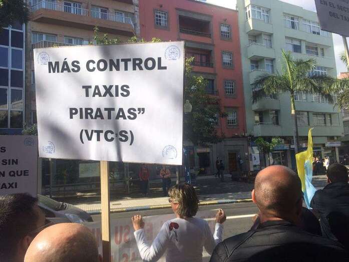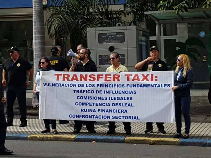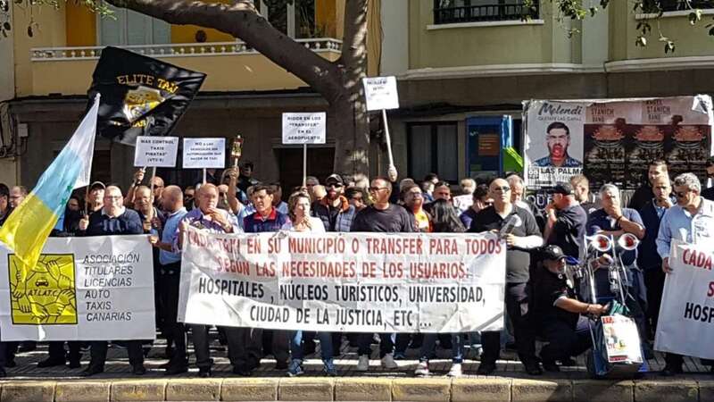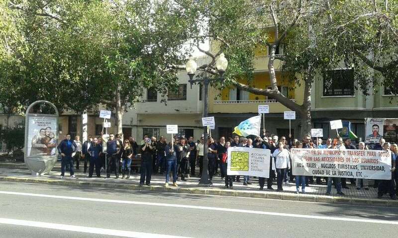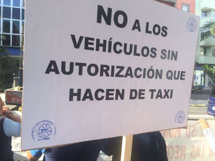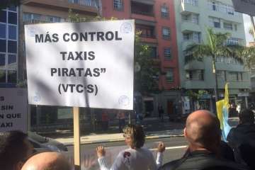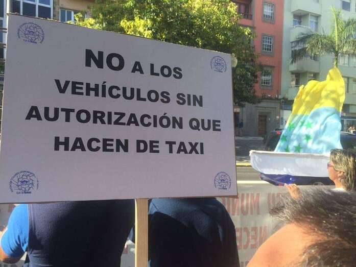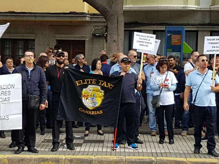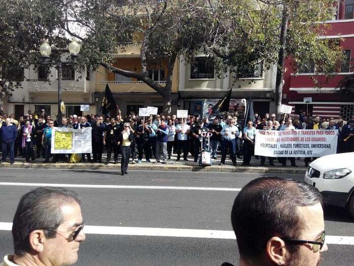 Los profesionales de Telde se concentraron a primera hora de la mañana en la explanada de La Barranquera, donde dejaron sus vehículos y se subieron en las guaguas que les llevaría a la capital para participar en la protesta organizada por la asociación profesional Élite Taxis Canarias, que presentó en el Cabildo un manifiesto en el que declara que el sector del taxi “no soporta más la lacra del intrusismo, la competencia desleal y el transporte irregular”.