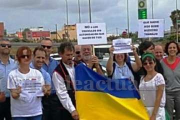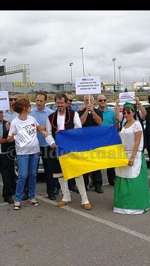 A la manifestación que a la misma hora se celebraba en España acudieron cuatro taxistas canarios para patentizar el apoyo del gremio de la Isla.