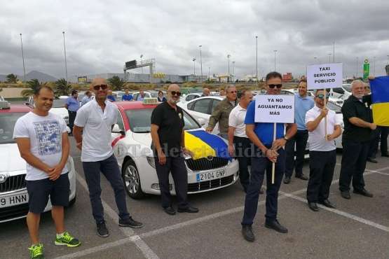 Imagen de taxistas concentrados en la protesta organizada en Telde (Foto TA) Imagen de taxistas concentrados en la protesta organizada en Telde (Foto TA)
