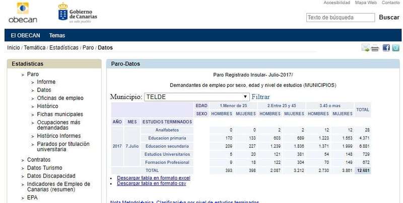 Otros datos que revelan las cifras oficiales son que el segmento poblacional de los mayores de 25 años lideran el desempleo en Telde, donde el sector comercio registran las cifras más altas y que la inmensa mayoría de los parados locales sólo poseen estudios de Primaria o Secundaria.