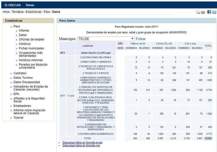 Según los datos facilitados este miércoles por el Observatorio Canario de Empleo (Obecan), del dato total de personas que carecen de un puesto de trabajo en Telde, 5.210 son hombres y 7.471mujeres, por lo que se mantiene en la ciudad el fenómeno ya histórico de la feminización del desempleo.