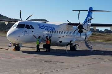 En esta primera fase de su despliegue en el mercado aéreo interinsular, Air Europa utiliza tres aviones ATR 72-500, con capacidad para 68 pasajeros.