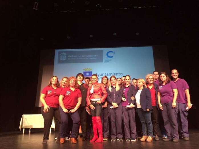Durante el reparto de los diplomas, la responsable del área de Desarrollo Local animó a las personas que se han beneficiado de esta iniciativa financiada por el Servicio Canario de Empleo y con fondos europeos, a “ser valientes” en esta nueva etapa en la que se adentran tras la finalización de su preparación y emprender e innovar.