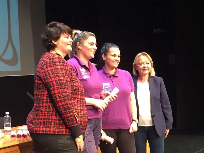 La concejala de Desarrollo Local del Ayuntamiento de Telde, Celeste López, y la técnica de Formación del Gobierno de Canarias Susana Marrero fueron las personas encargadas de entregar los certificados de profesionalidad a los 75 alumnos de estos Pfaes (15 por programa): Atención Sociosanitaria, Páginas Web, Buganvilla, Limes y Electrodo, este último destinado a personas mayores de 30 años.