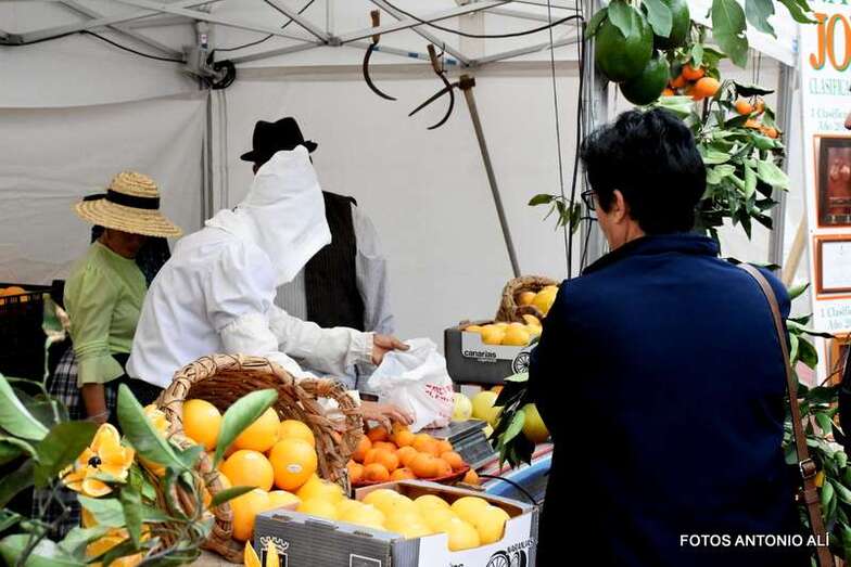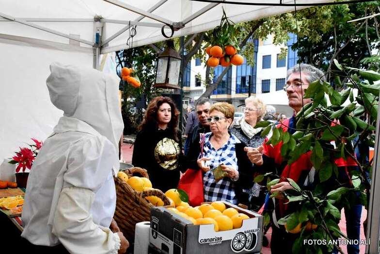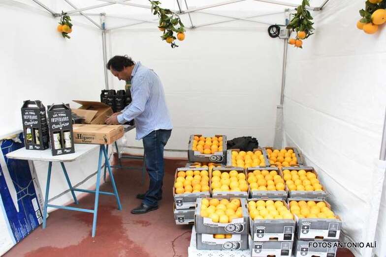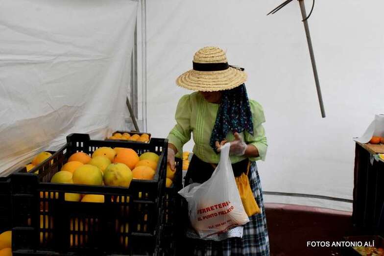 La muestra arrancó pasadas las 10.00 horas con la apertura de los puestos de venta de naranjas y de productos de miel, quesos, aceite, aceitunas, etcétera de la campaña Saborea Telde.