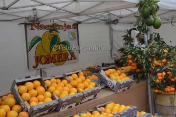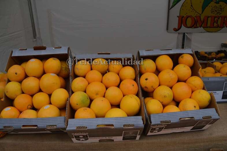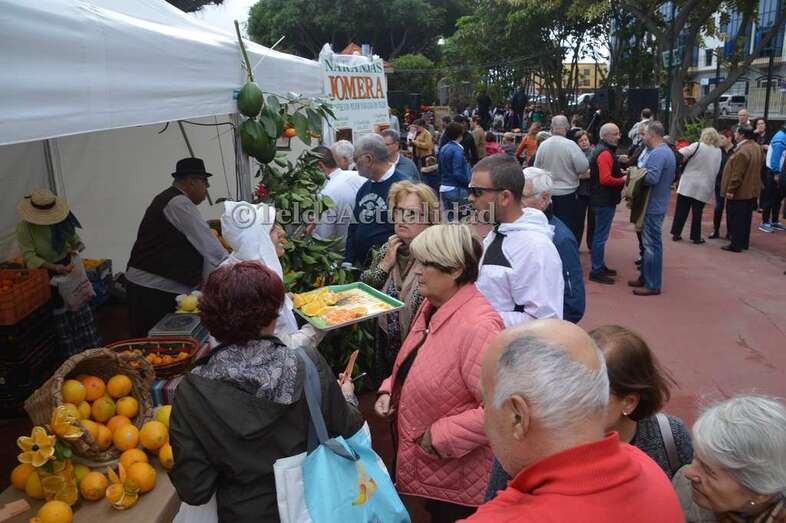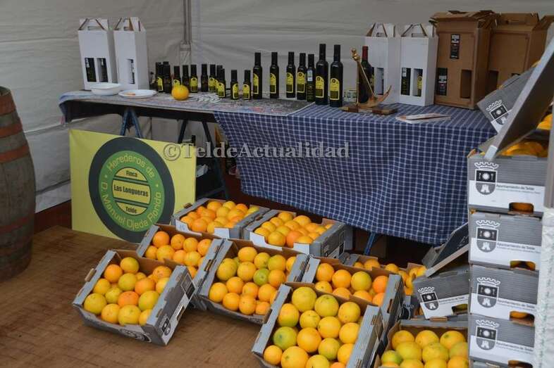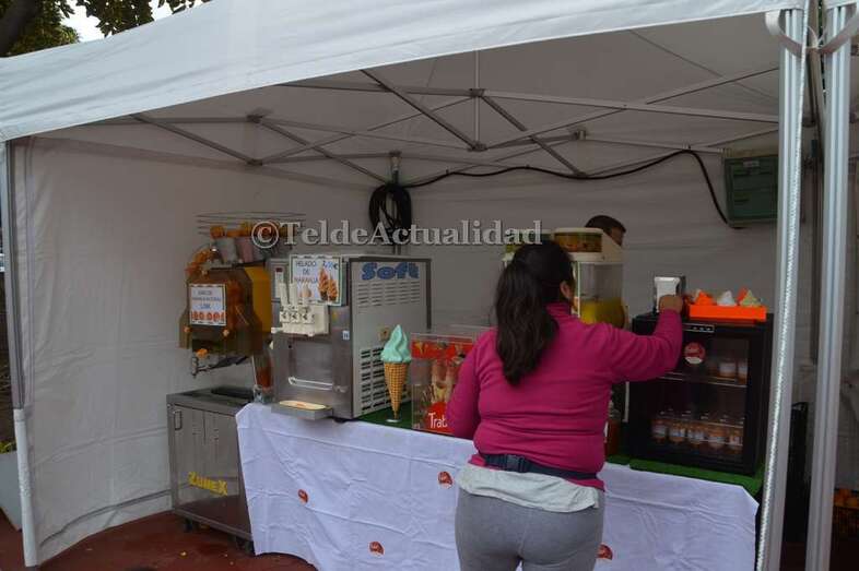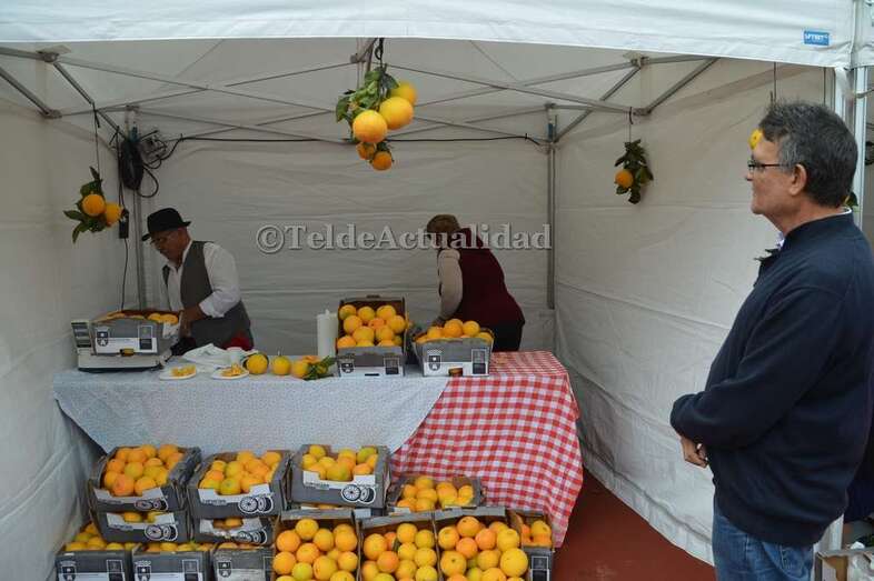 La feria arrancó pasadas las 10.00 horas con la apertura de los puestos de venta de naranjas y de productos de miel, quesos, aceite, aceitunas, etcétera de la campaña Saborea Telde.