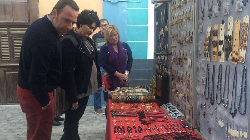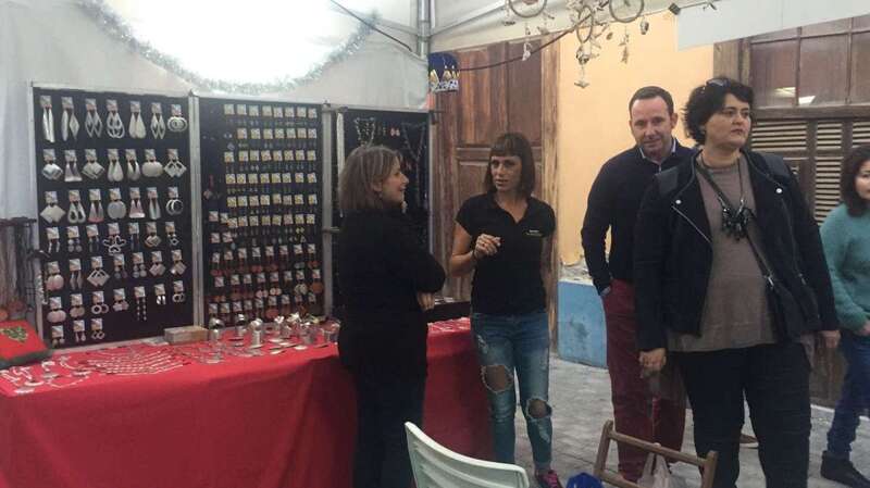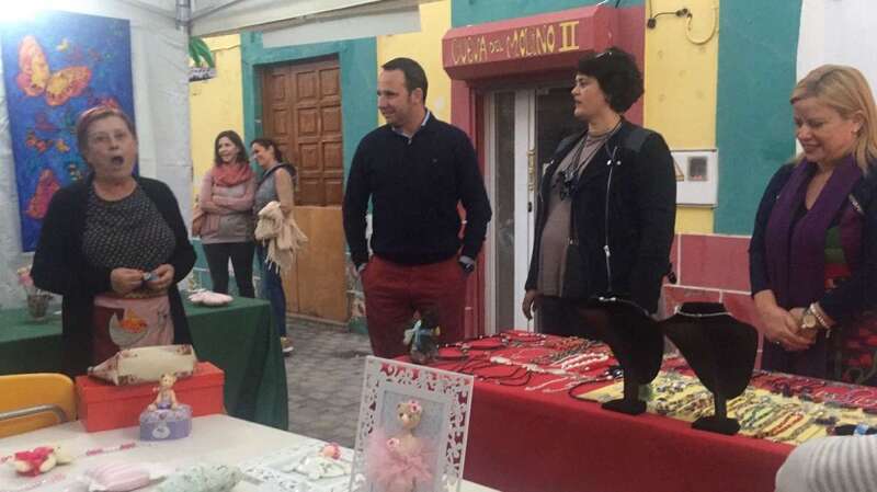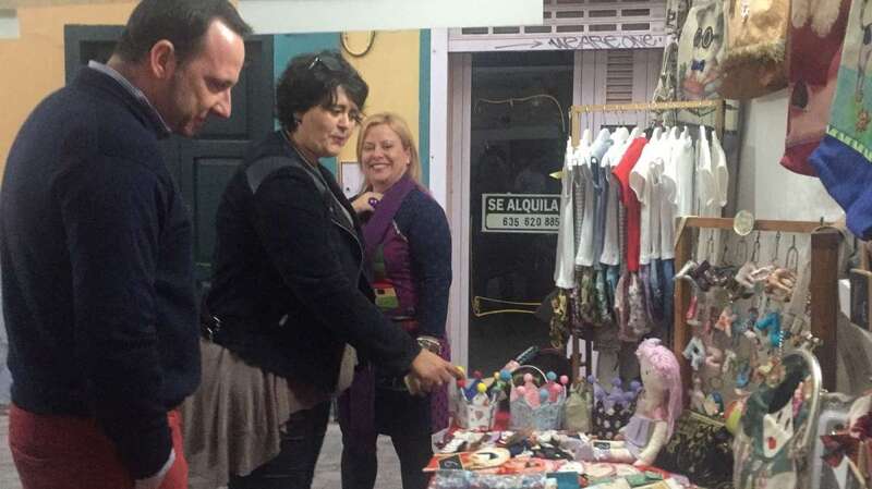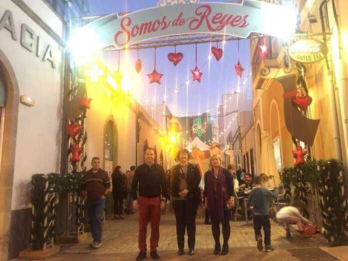 Los concejales nacionalistas Celeste López y Eloy Santana (NC) y la presidenta de la Asociación de Empresarios de la Zona Comercial Abierta fueron los encargados de oficializar su apertura dando un paseo por la veintena de puestos que se han montado y a los que la ciudadanía podrá acercarse para hacer sus encargos de Reyes hasta la misma víspera.