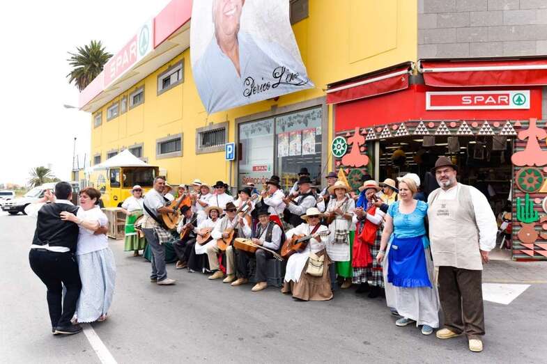 Este es el caso del Spar de La Barranquera, que en cada edición se supera. En esta ocasión, los clientes recibirán la bienvenida al supermercado con la actuación de la parranda El Gray Faycán del Centro de Mayores de Telde, cuyos componentes cantaban y bailaban Idas y folías a las puertas del comercio.
