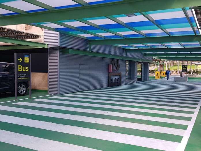 Según detallan desde Aena, las marquesinas estaÌn hechas a base de estructura metaÌlica y cubierta de policarbonato de varios colores.