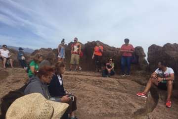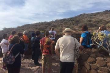 La concejala del área, Celeste López, explica en una nota de prensa que cerca de medio centenar de personas participaron este viernes en la visita guiada a los enclaves de Tufia y Cuatro Puertas, dos de los yacimientos arqueológicos que se conocen en el territorio municipal.